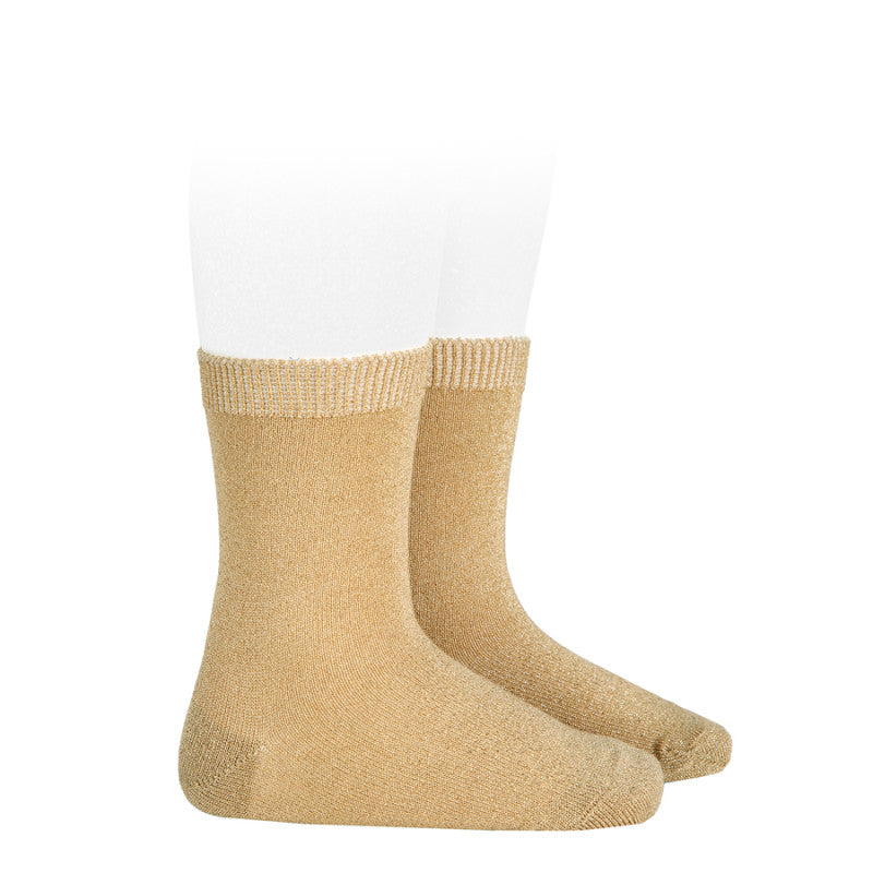 Condor Kids Ribbed Glitter Ankle Socks - Beige Gold 313