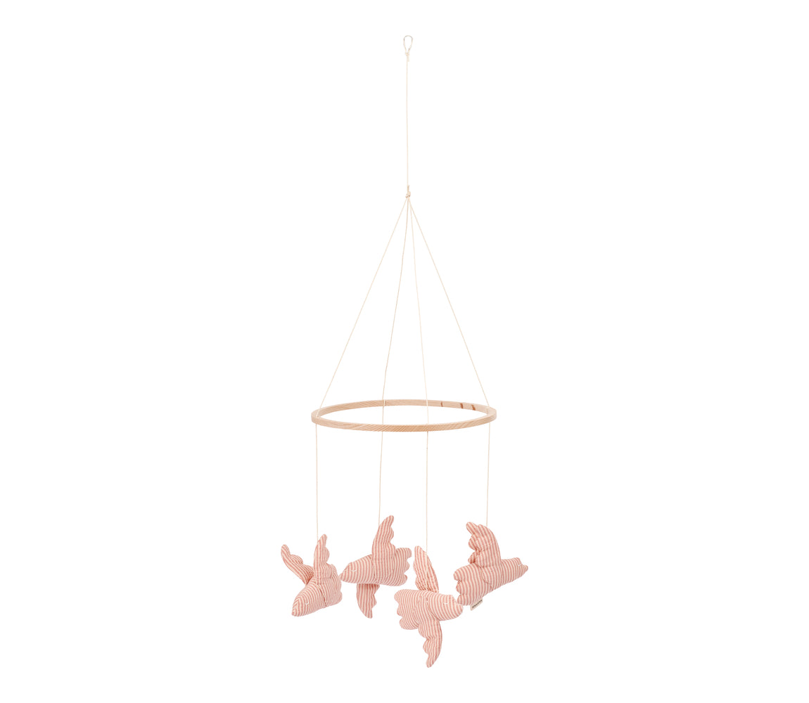 Birds Seersucker Mobile - Soft Cheek Stripe by Mar Mar Copenhagen