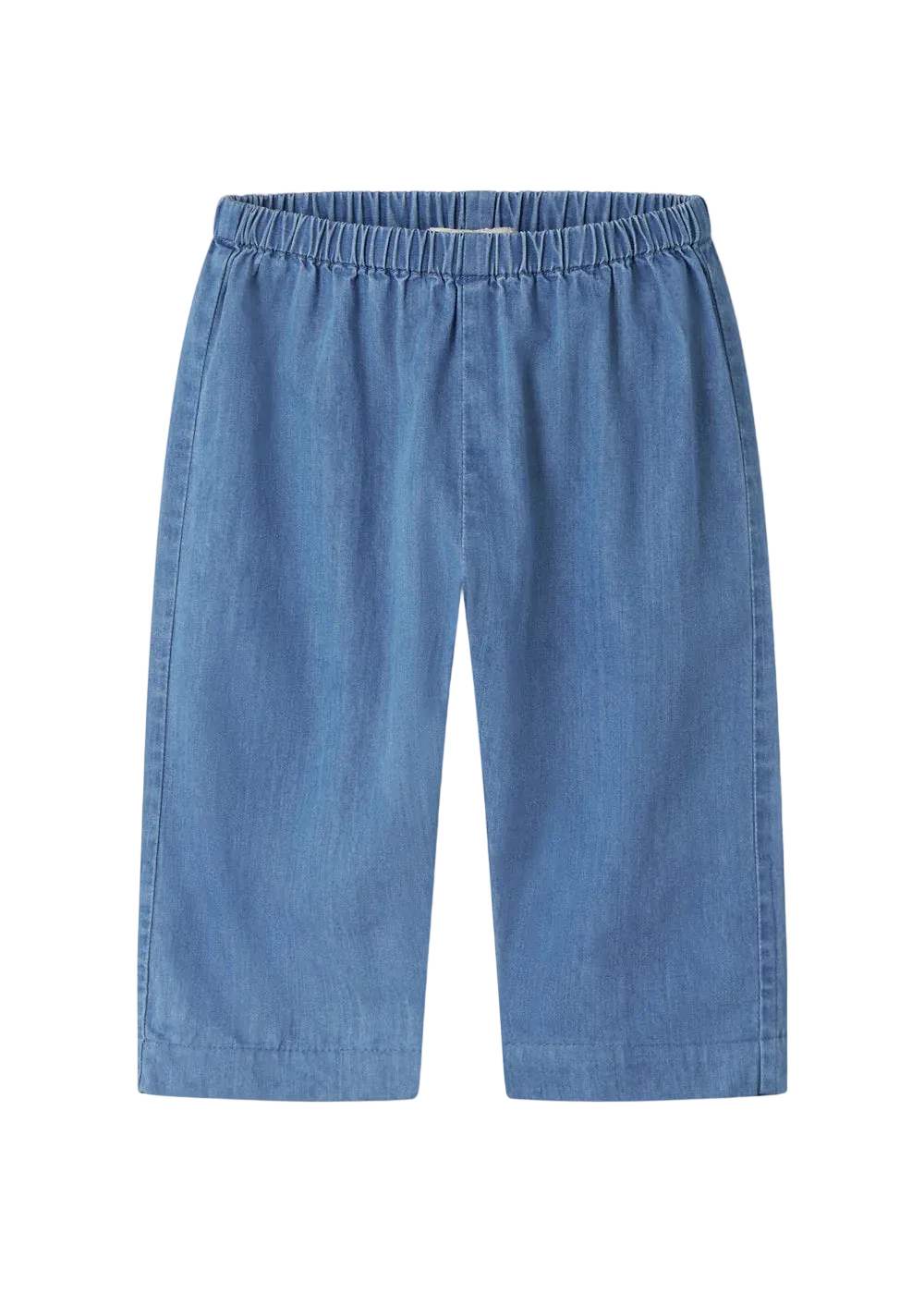 Comfortable denim pants with a loose fit, a back pocket and elastic waist. The pants are made of soft cotton with a delicate texture.