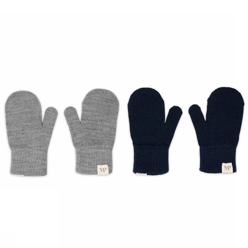 MP Kids 2 Pack Baby Mittens - Light Grey Mel Blue