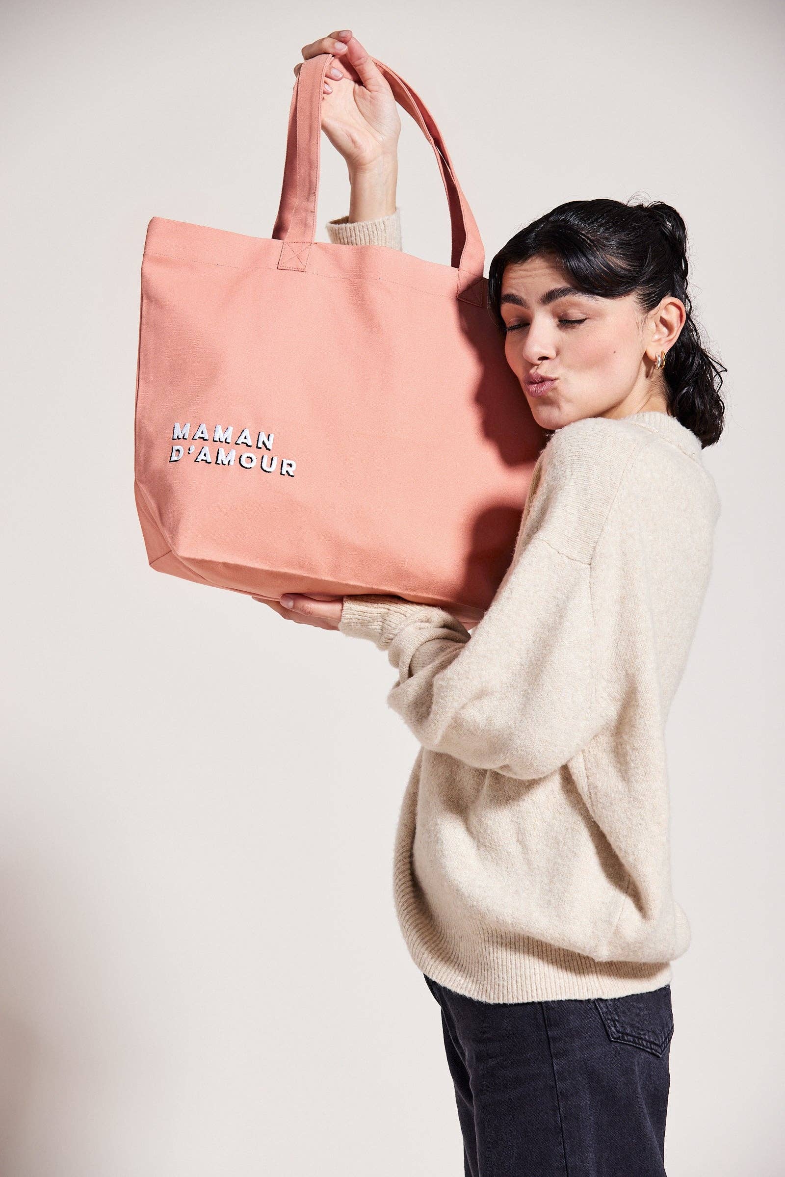 The perfect gift for mums! With its generous size and sturdy cotton, it is an ideal companion in all situations (shopping, outings, or other escapades...). Its beautiful hand-made embroidery "Maman d'amour" (Mother of Love) adds a personal touch to this bag to celebrate those we love.