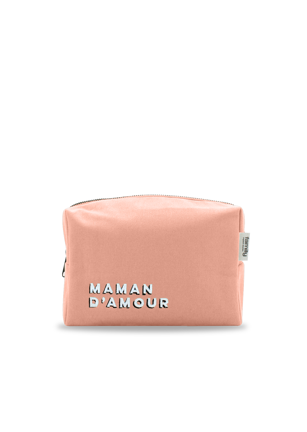 Say "I love you" by offering a truly useful accessory! This sturdy and stylish toiletry bag is perfect for everyday use, whether at home or while traveling. Its size is ideal for carrying essential items and easy to slip into a bag or suitcase. With its handmade "Maman d'amour" (Mother of Love) embroidery, this bag is a reminder of love for all moms to show them that they matter a lot.